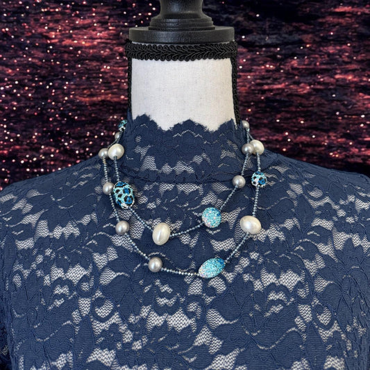 Long Crystal Necklace with Swarovski Elements and shell Pearls Blue