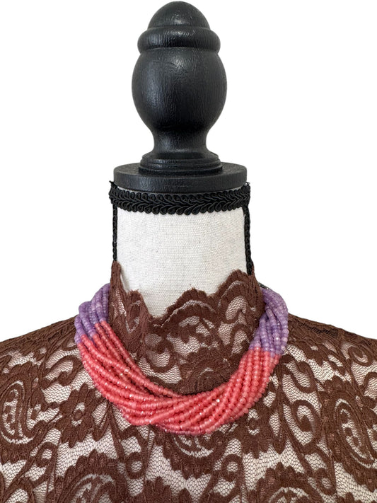 11 Line Multicolor Shaded Glass Bead Necklace Purple
