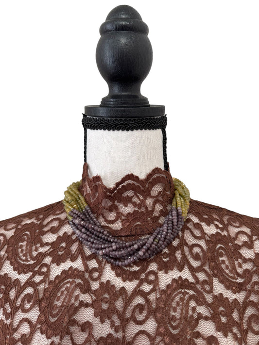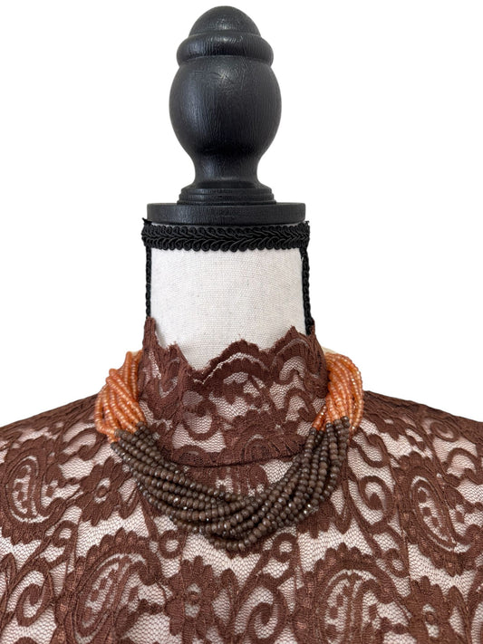 11 Line Multicolor Shaded Glass Bead Necklace Brown