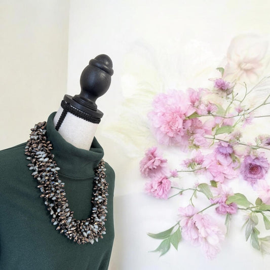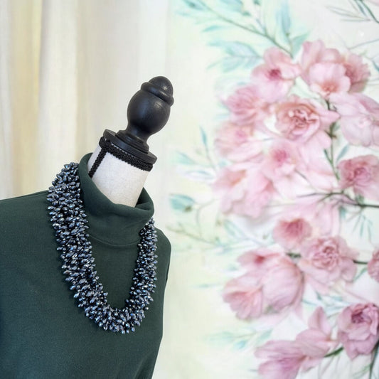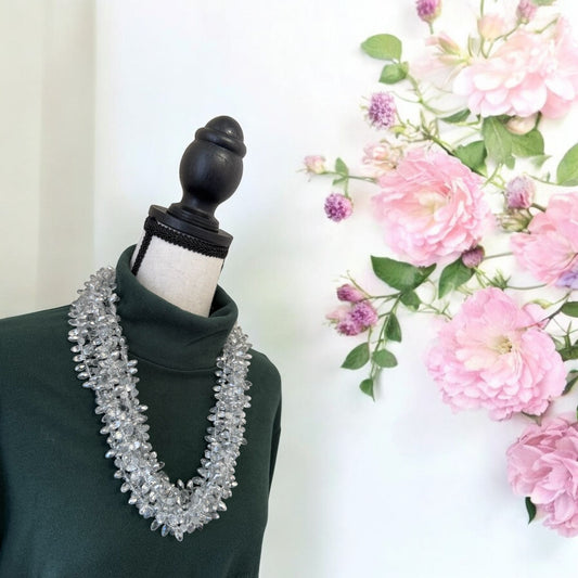 The 6 Line Bullet Crystal Cluster Necklace is a dazzling piece featuring six strands adorned with bullet-shaped crystals. These crystals are clustered together, creating a bold and dynamic look that adds texture and depth. Crafted from high-quality crystals, often Swarovski, this necklace exudes luxury and brilliant sparkle. Its design makes it perfect for making a statement, whether at formal events or glamorous evenings out. The versatile nature of this necklace allows it to elevate any outfit, adding a touch of glamour and sophistication.