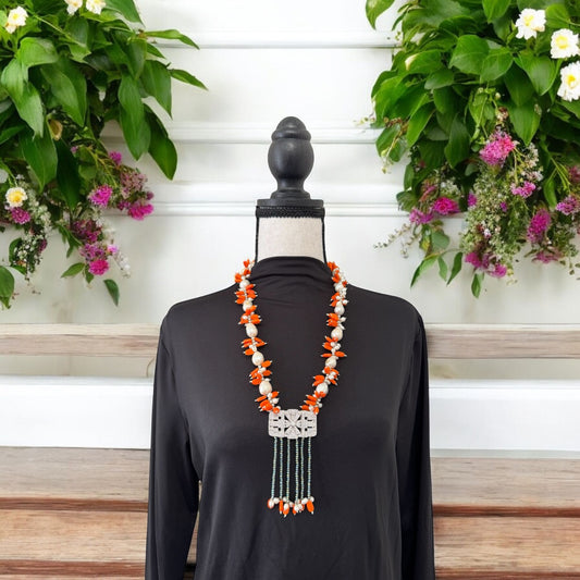 Baroque and Fresh Water Pearl with Zircon Square Pendant Necklace Orange
