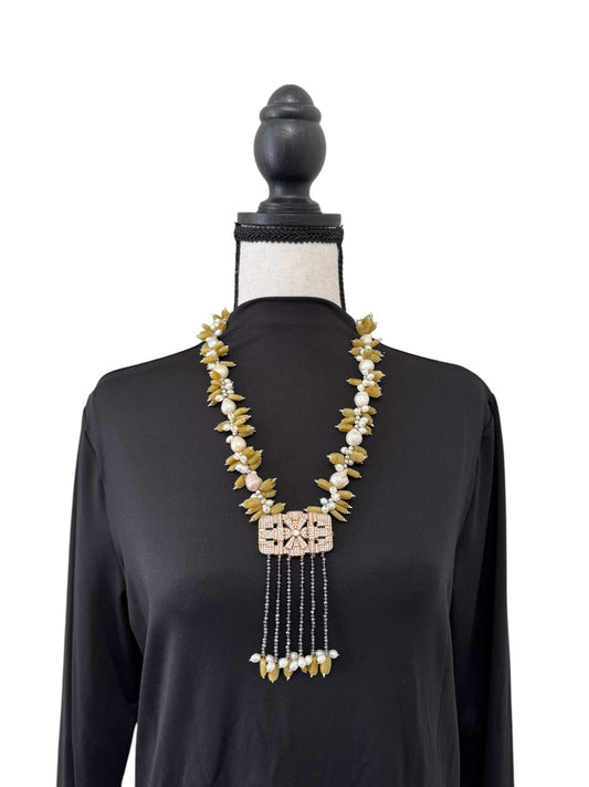 Baroque and Fresh Water Pearl with Zircon Square Pendant Necklace Yellow