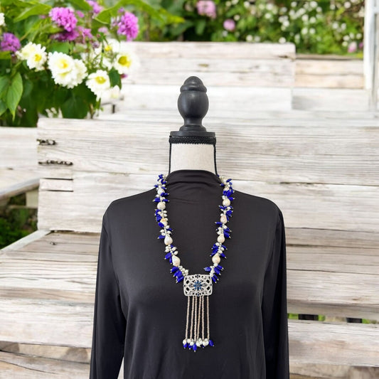 Baroque and Fresh Water Pearl with Zircon Square Pendant Necklace Navy