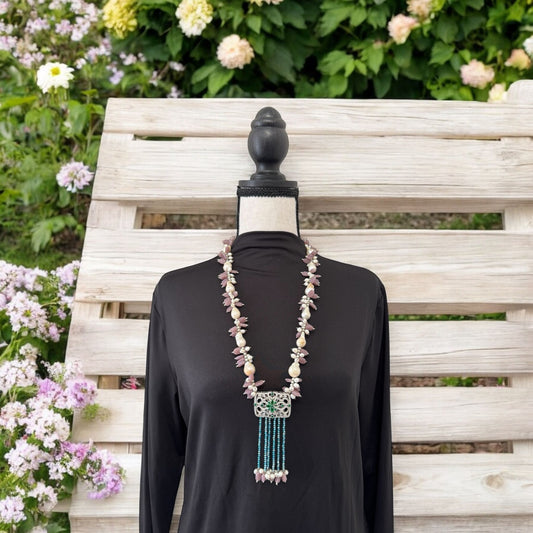 Baroque and Fresh Water Pearl with Zircon Square Pendant Necklace Purple