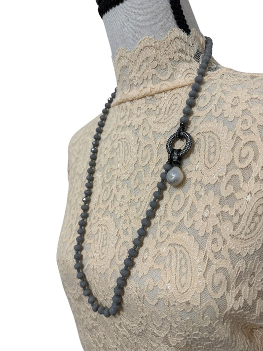 The Baroque Pearl Large Crystal with Clasp Necklace features unique baroque pearls with natural, irregular shapes, lending an artistic touch. Large crystal accents interspersed among the pearls catch the light brilliantly, adding sophistication. The stylish clasp ensures a secure and comfortable fit, while the design effortlessly combines elegance with modernity. This versatile piece is perfect for both special occasions and everyday wear, making it a stunning addition to any jewelry collection.