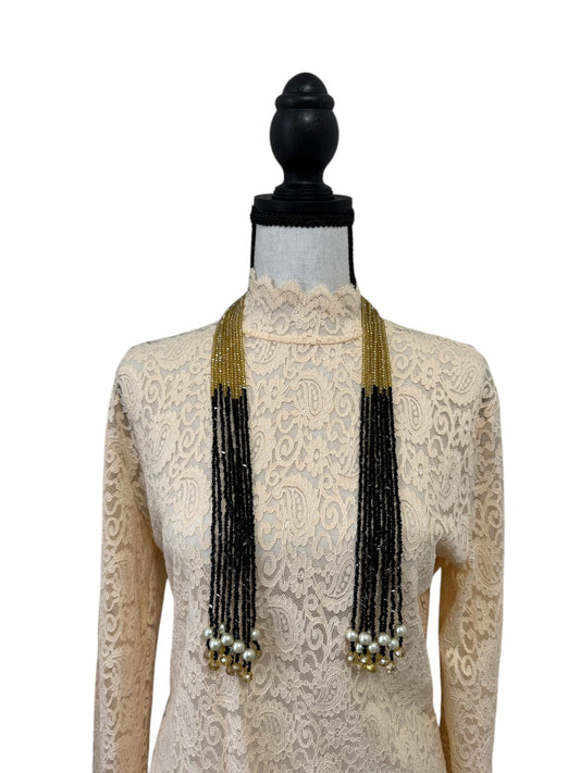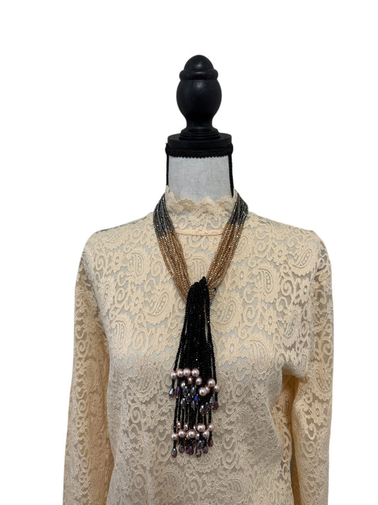 Crystal Scarf Black and Beige Multiway Drape Style Statement Necklace