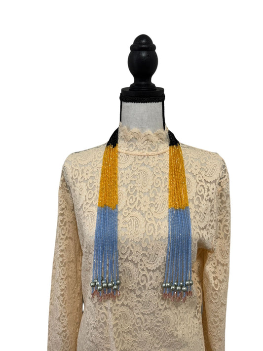 Crystal Scarf Blue and Yellow Multiway Drape Style Statement Necklace