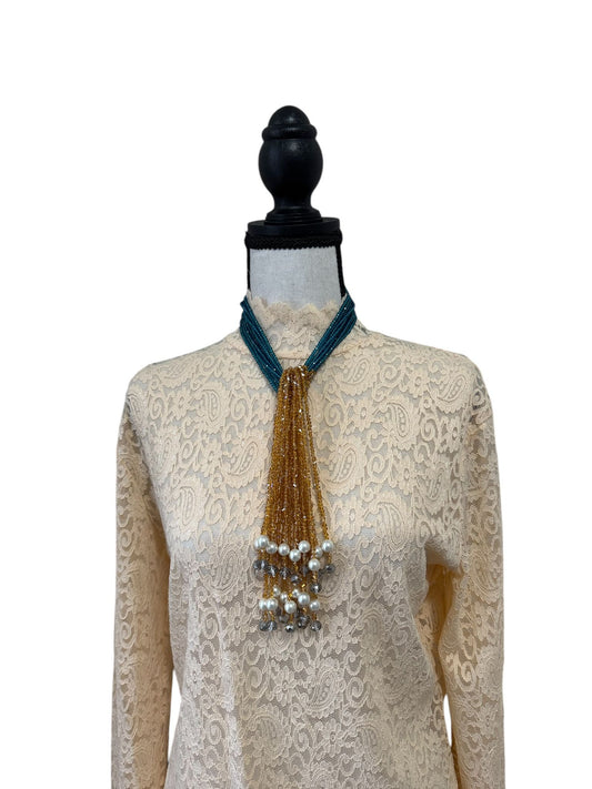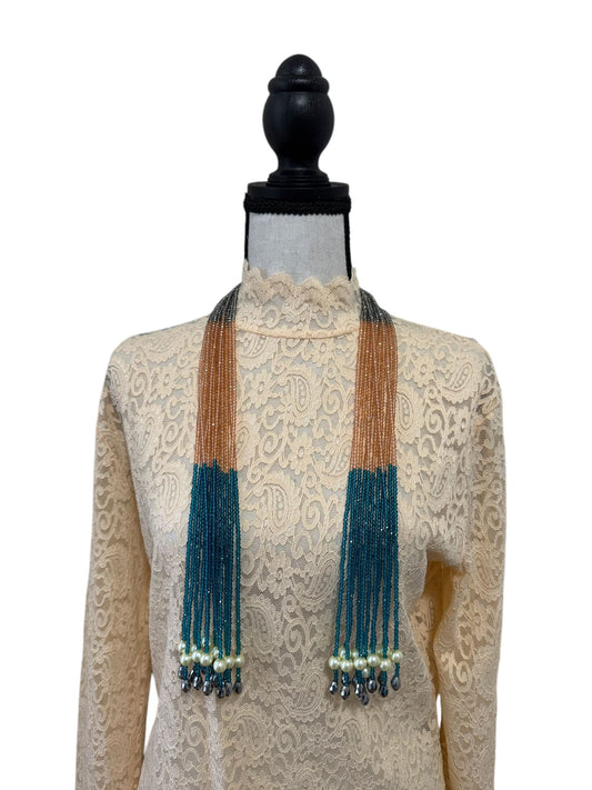Crystal Scarf Peach and Teal Multiway Drape Style Statement Necklace
