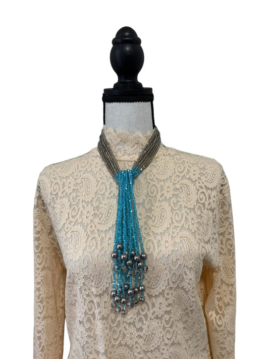 Crystal Scarf Teel and Topaz Multiway Drape Style Statement Necklace