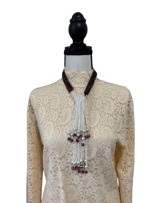 Crystal Scarf Amethyst and White Multiway Drape Style Statement Necklace