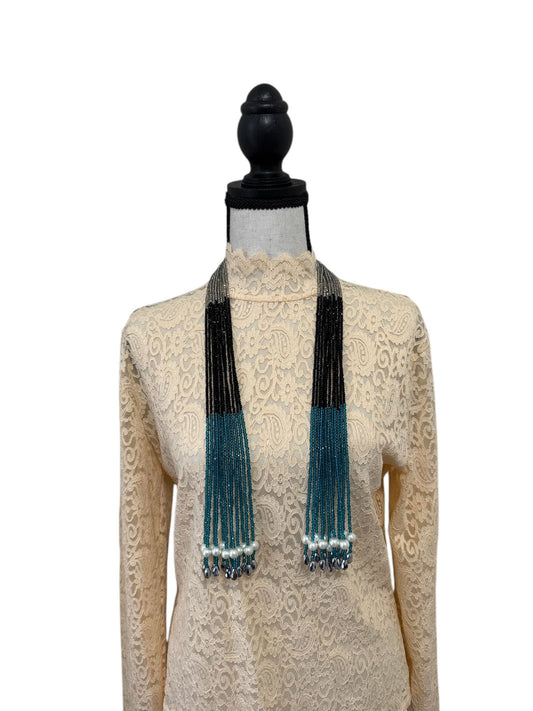 Crystal Scarf Teel Black and Gray Multiway Drape Style Statement Necklace