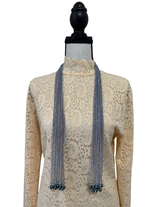 Crystal Scarf Smoky and Sky Blue Multiway Drape Style Statement Necklace