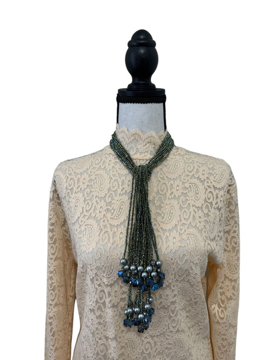 Crystal Scarf Emerald and Pale Green Multiway Drape Style Statement Necklace