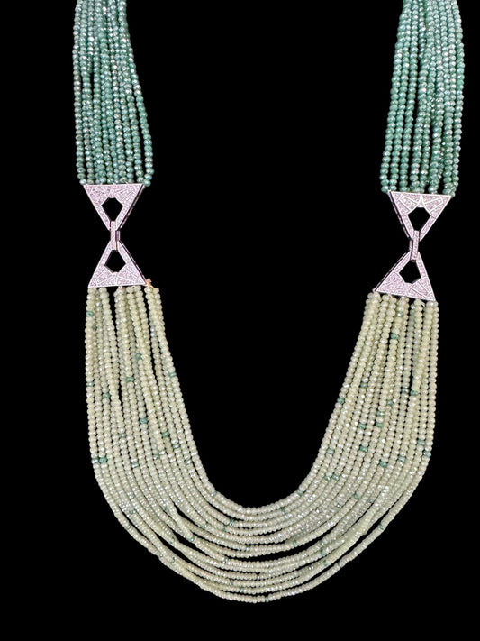 Dual Shade 10 Line Long Double Pendant Layered Crystal Necklace Green