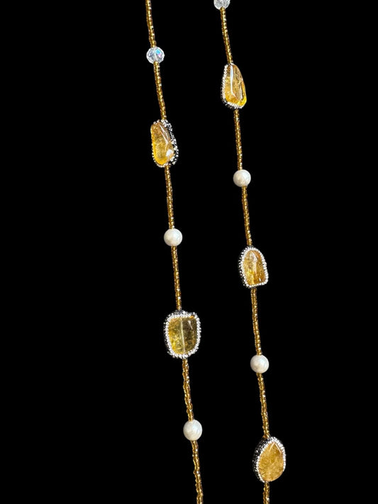 Single Line Pearl and Turkish Bead Crystal Necklace Orange