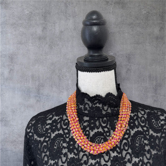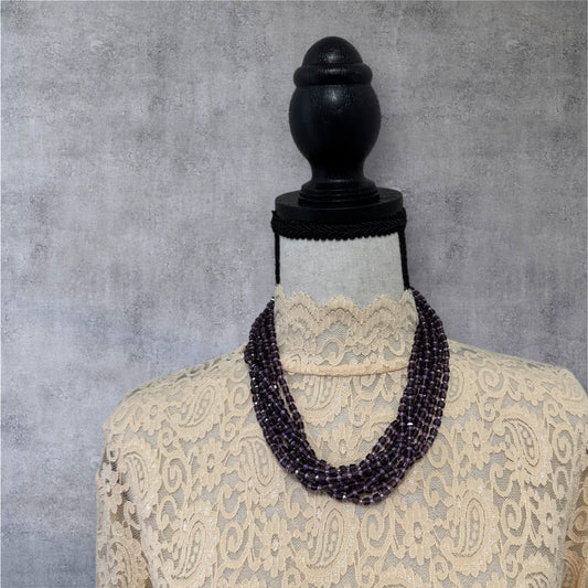 Square Crystal 8 Line Cluster Short Round the Neck Necklace