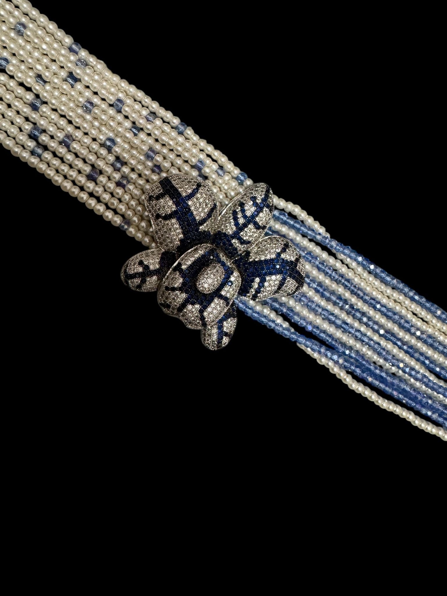 Crystal and Pearl Choker with Zircon Orchid Pendant